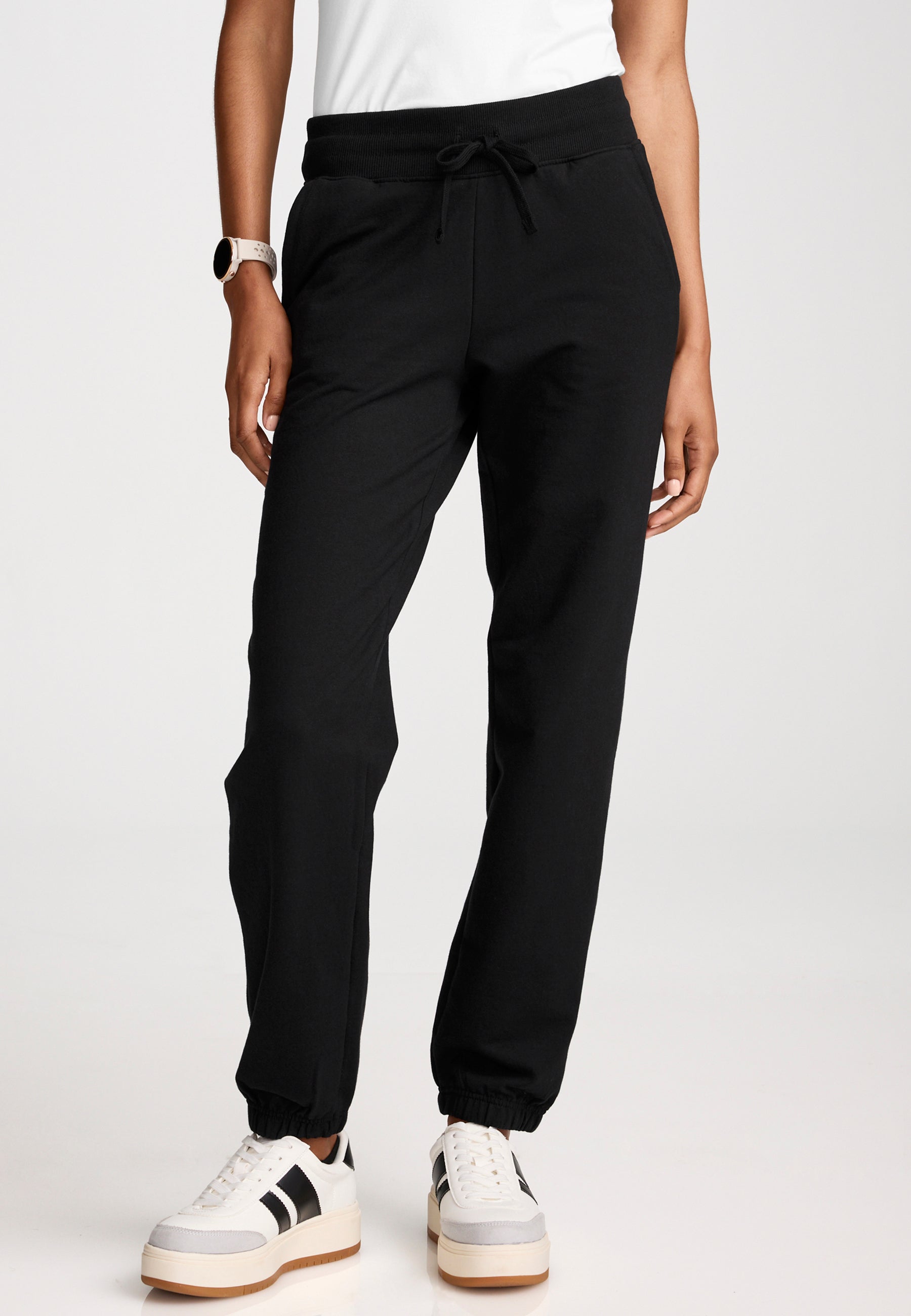 • Mit dem Kordelzugbund lässt sich die Passform individuell anpassen