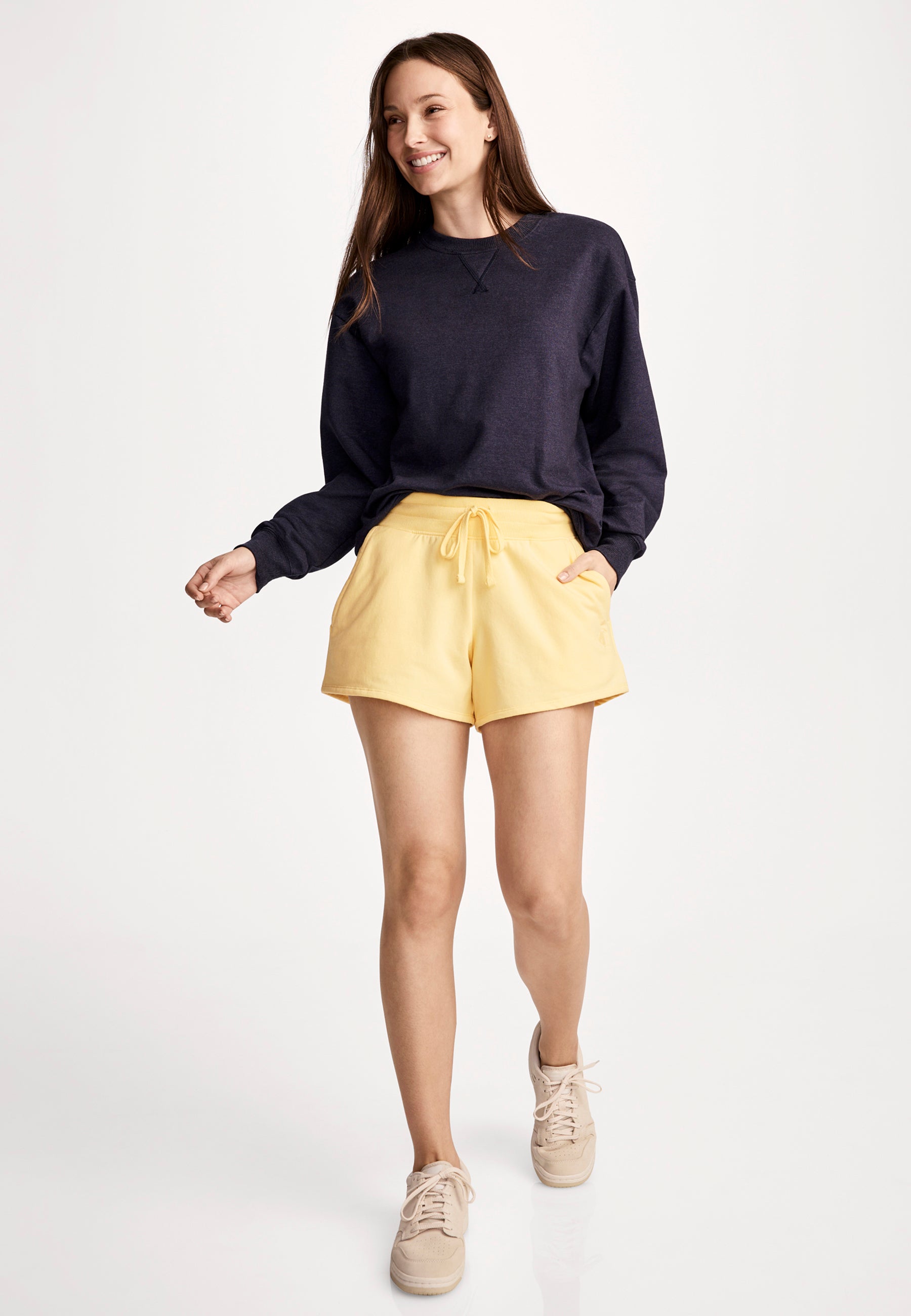 Entspannen Sie sich zu Hause oder erledigen Sie einige Besorgungen, ohne sich umziehen zu müssen. Unsere Unwind Shorts sind äußerst bequem und dennoch elegant genug, um sie auch außerhalb des Hauses zu tragen.